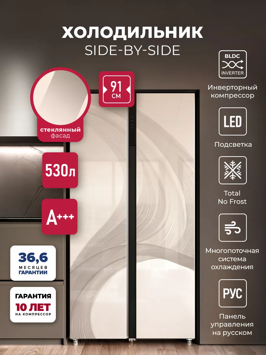 Двухкамерный холодильник LSB 530 вместит все вкусное и полезное. Fresh-зона и многопоточная система вентиляции обеспечат свежесть любого продукта, два контура охлаждения, панель управления и дисплей позволят точно контролировать температуру в каждом отделении. Для простоты эксплуатации модель имеет несколько предустановленных режимов работы: суперзаморозка и быстрое охлаждение, а также смарт-режим и поддержание температуры в течение нескольких часов, которое пригодится при неполадках с электричеством. Благодаря расположению дверей SIDE BY SIDE продукты в обеих камерах можно размещать на комфортных для вас уровнях. Технология Total No Frost делает уход за холодильником максимально легким, чтобы у вас было больше свободного времени, а мощный инверторный компрессор работает почти бесшумно.