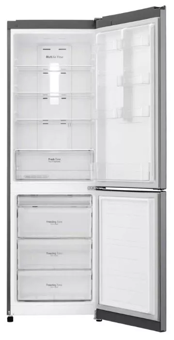 В холодильнике LG GA-B419SLGL предусмотрен индикатор температуры и механизм, сигнализирующий об открытой двери. Вместительная морозильная камера объемом в 124 л с четырьмя выдвижными ящиками расположена снизу и автоматически размораживаются по системе No Frost.