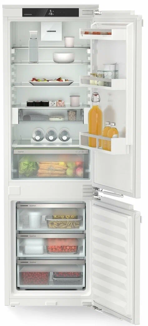 Контейнер EasyFresh гарантирует свежесть продуктов в вашем доме, как на рынке. Неупакованные фрукты, овощи или плоды: здесь всё хранится оптимально. Благодаря плотному закрытию контейнера под воздействием продуктов в нём повышается влажность воздуха. Таким образом, продукты остаются свежими долгое время. Такой холодный, такой умный: технология SmartFrost эффективно снижает образование инея во внутреннем пространстве и на замороженных продуктах. В результате снижается потребление электроэнергии, а морозильную камеру теперь можно размораживать гораздо реже. Еще одно преимущество: гладкую поверхность внутренних стенок легко и удобно мыть. Реальность прикосновения: сенсорный экран позволяет легко и интуитивно управлять вашим устройством Liebherr. Все функции наглядно расположены на экране. Легким касанием пальца вы можете легко выбрать функции или проверить текущую температуру холодильника.