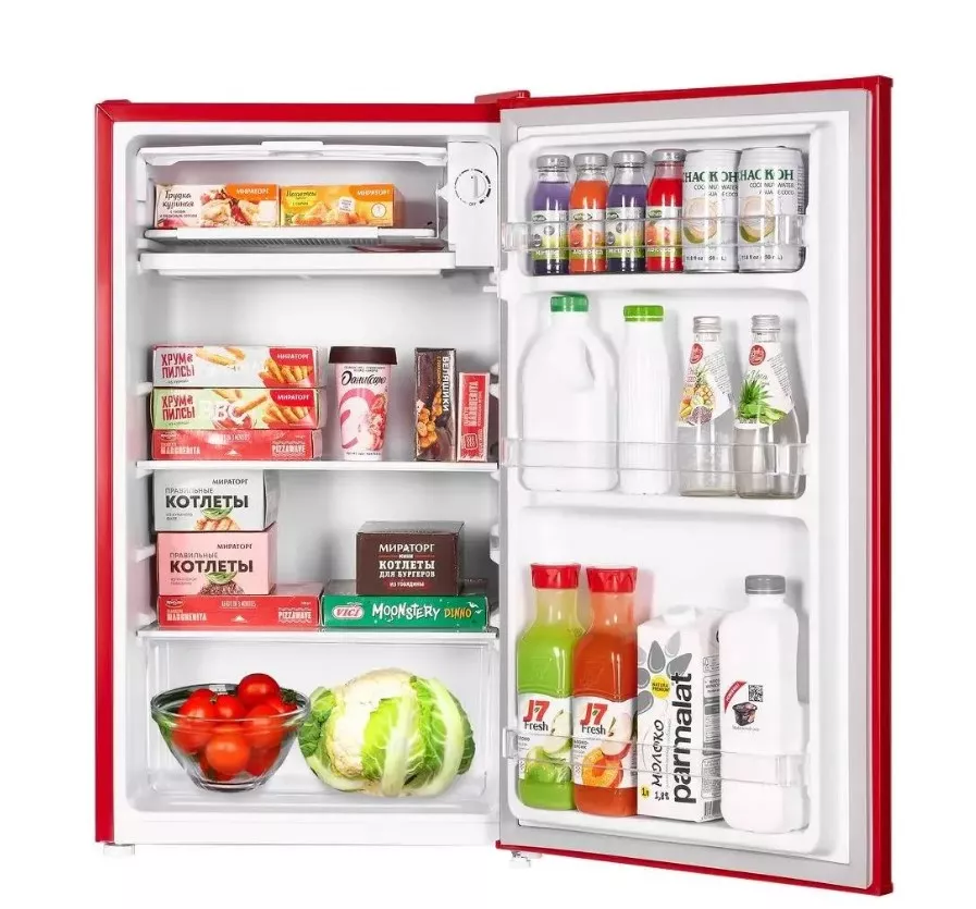 Компактные размеры (47.4 х 83.1 х 44.7 см) и объем 92 литра делают его идеальным решением для помещений, где важен каждый сантиметр. При этом полезный объем холодильной камеры составляет 85 литров — этого достаточно для комфортного хранения продуктов для одного-двух человек. А насыщенный красный цвет корпуса из металла придаст вашей кухне индивидуальности и динамики.