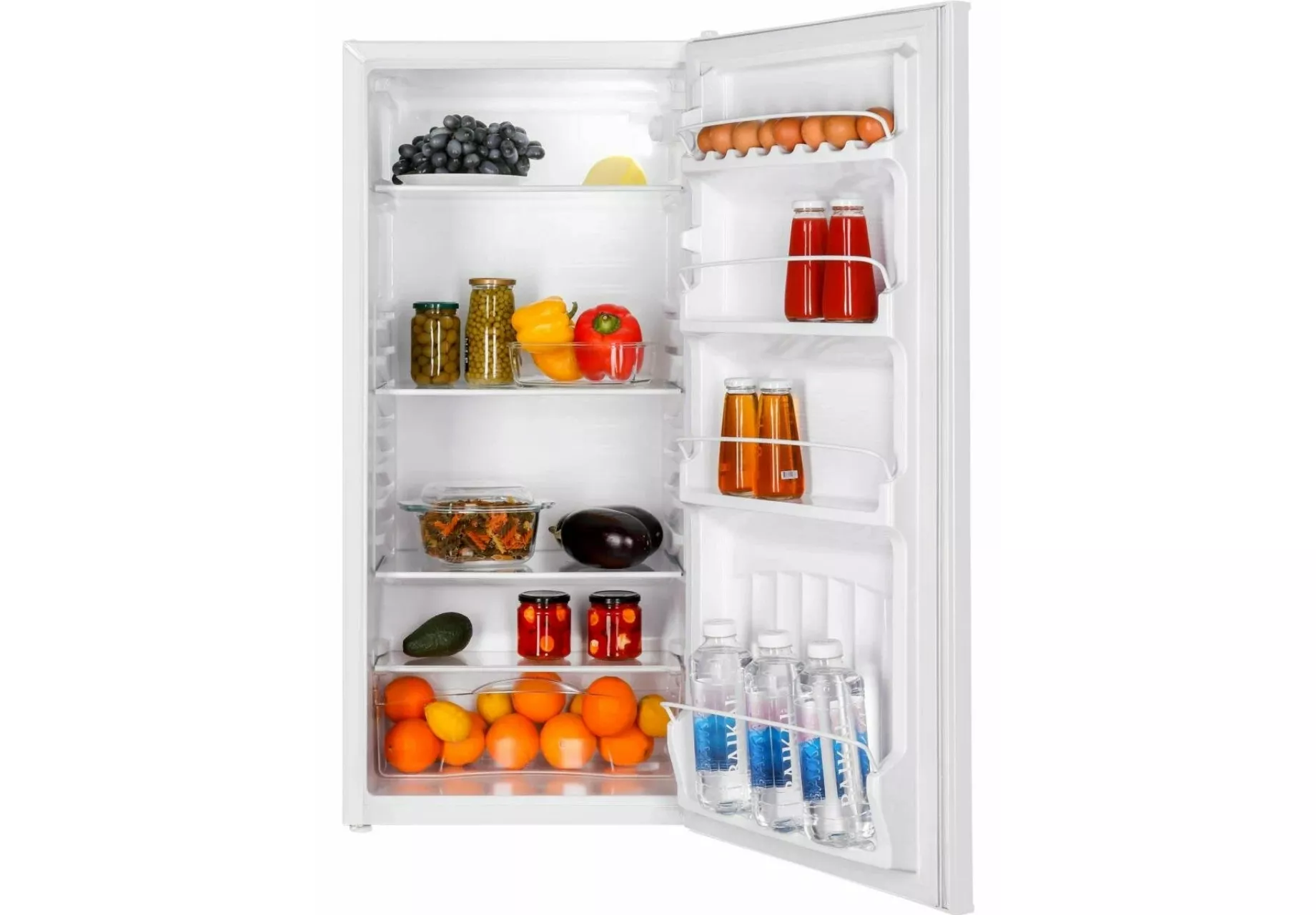 Дверь с интегрированной горизонтальной ручкой имеет возможность перенавешивания на другую сторону для комфортного открывания и установки модели в удобном месте. Корпус холодильника выполнен в белом цвете.