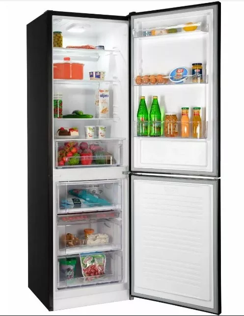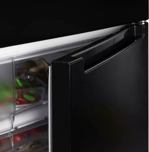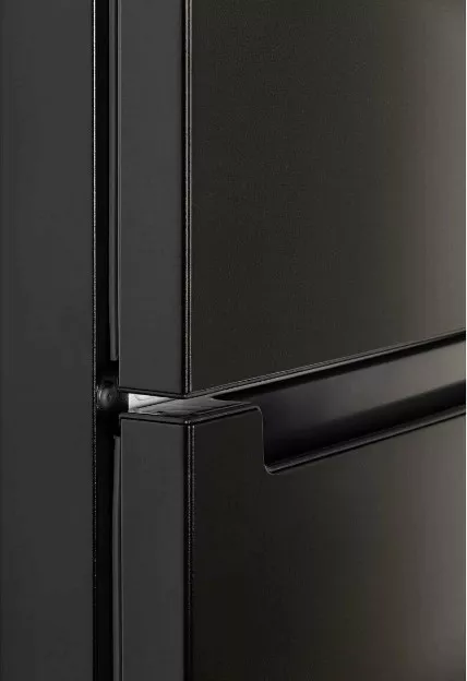 Модель с общим объемом 320 литров и нижним расположением морозильной камеры выполнена в черном матовом цвете. Классический корпус с горизонтальными интегрированными ручками впишется в интерьер любой кухни — от минимализма до уютной классики.