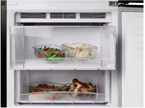 вместительный ящик для овощей и фруктов сохраняет нужный микроклимат и облегчает доступ к свежим продуктам;
