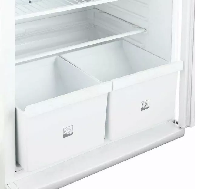 • Два вместительных пластиковых ящика в нижней части для овощей и фруктов, которые помогут дольше сохранить их свежесть.