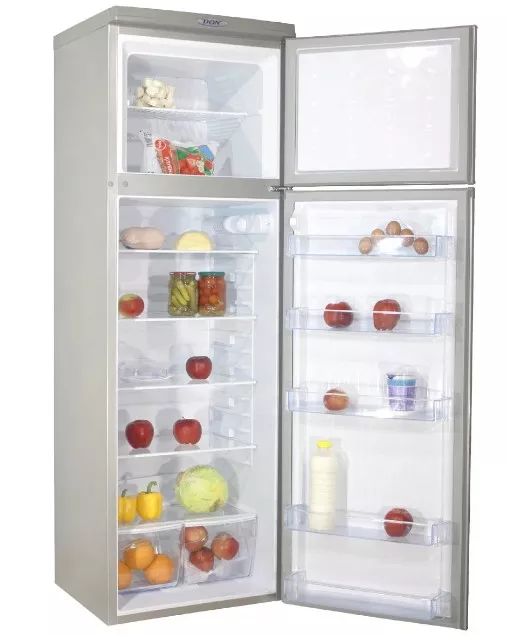 Работает холодильник с морозильником DON R-236 MI достаточно тихо (41 дБ), а по количеству потребляемой электроэнергии относится к классу А. В холодильной камере объемом 250 л продукты располагаются на стеклянных полках и полках-балконах на дверце холодильника. Для яиц имеется специальная подставка. Расстояние между полками в камере можно регулировать. В нижней части холодильника есть выдвижные ящики под овощи/фрукты. Чтобы дверцы холодильника открывались в нужную сторону, их можно перевесить.