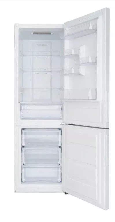 Функциональность: холодильная камера наполнена четырьмя прочными полками из закаленного стекла и пластиковым ящиком для овощей и фруктов, также на дверце находятся две длинные и три небольшие полки. В морозильной камере расположены три прозрачных пластиковых ящика.