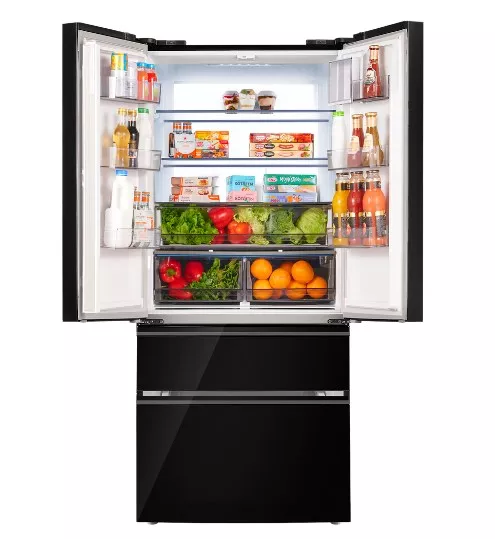 Премиальный вместительный холодильник с распашными дверями и нижним расположением морозильной камеры подойдёт для хранения большого количества продуктов. Он идеально впишется в любой современный интерьер.