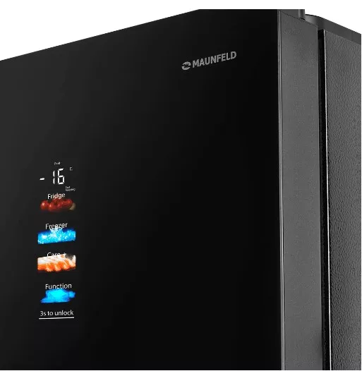 В дверцу холодильника встроена сенсорная электронная панель управления. На большом информативном дисплее отображаются температура и индикаторы режимов работы. Панель управления можно заблокировать от случайного нажатия.