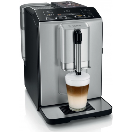 Кофемашина Bosch VeroCup 300 TIS30321RW создана для тех, кто являясь поклонником бодрящего напитка, не желает утруждать себя изучением тонкостей его приготовления. Здесь все делается автоматически. От пользователя требуется только задать нужную крепость, залить воду, молоко, засыпать обжаренные зерна и выбрать, что именно нужно приготовить: эспрессо, латте, капучино или кафе крема. Bosch VeroCup 300 TIS30321RW сделает все остальное самостоятельно. Благодаря давлению в 15 бар ей удается извлечь из смолотых ей же зерен весь вкус и аромат, причем за считанные секунды. Разливать напиток получится в одну или две чашки одновременно. Для сбора капель и отходов есть съемные контейнеры. Чтобы система работала как часы, периодически нужно задействовать функцию самоочистки.