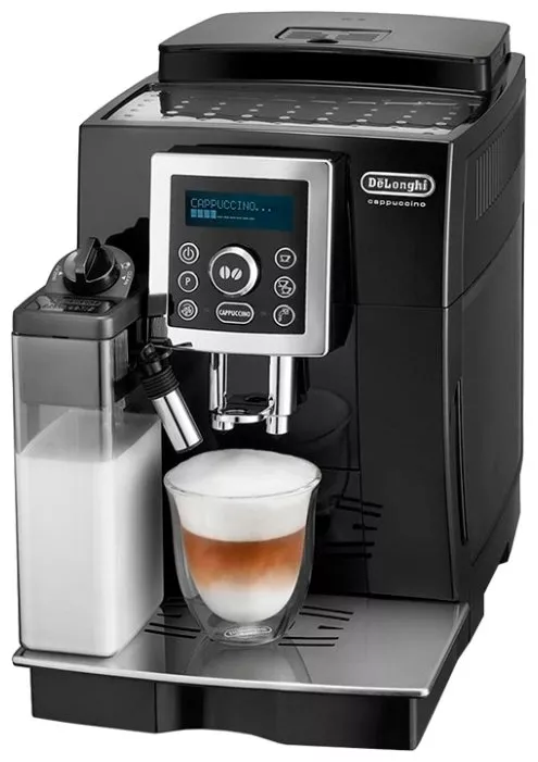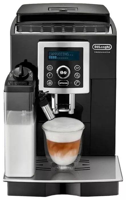 Кофемашина De'Longhi ECAM 23.460 B с автоматическим приготовлением эспрессо и капучино. Используемый кофе молотый/зерновой. Встроенная кофемолка. Одновременное приготовление двух чашек.