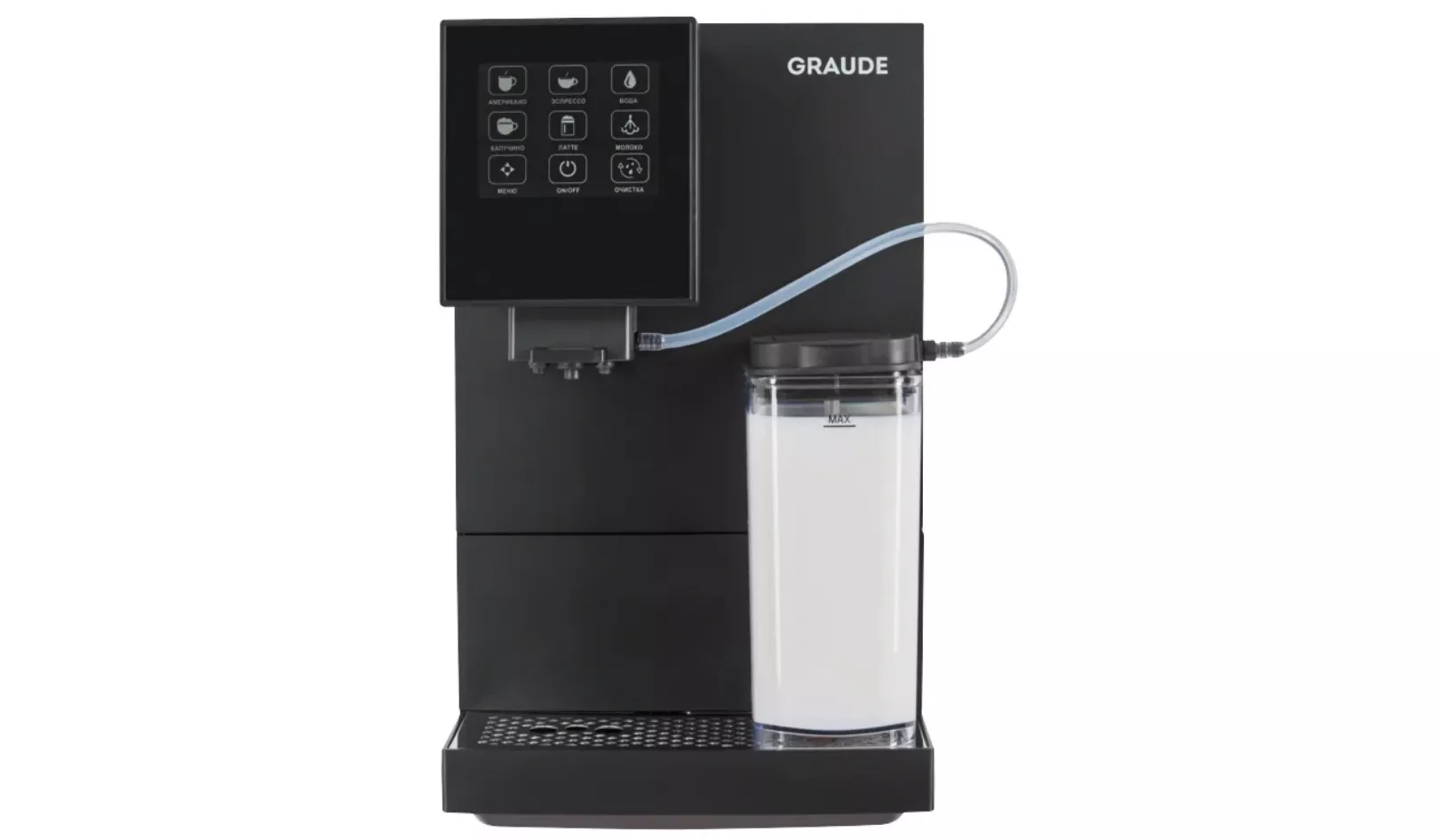 Модель Graude KV 30.2 способна приготовить не только обычный и двойной кофе, но и эспрессо, американо, капучино, кофе латте. Также есть возможность приготовления молочной пены и подачи горячей воды. Съемный резервуар для воды объемом 1.1 литра и емкость контейнера для зерен 100 гр. обеспечивают удобство использования и обслуживания кофемашины.