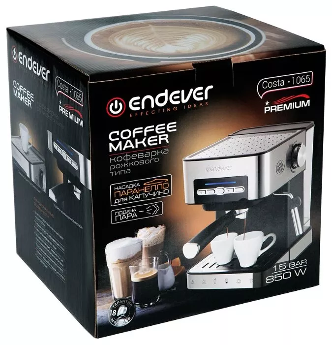 Кофеварка рожковая Endever Costa-1065 располагает съемным поддоном для капель, который с легкостью вынимается из устройства для последующего очищения от избыточной влаги. Используя специальную насадку, у вас появится возможность насладиться невероятно ароматным напитком с крепкой пеной. Представленная сенсорными элементами панель управления гарантирует получение мгновенного доступа к функционалу.