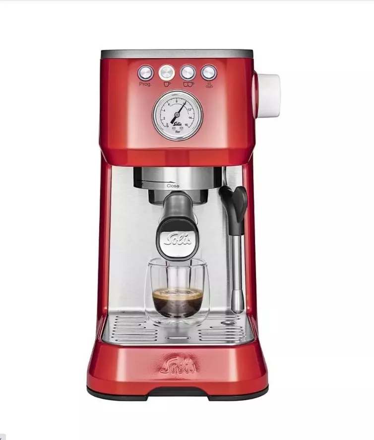 Кофеварка рожковая SOLIS 1170 выполнена в красном корпусе и использует молотый кофе для приготовления напитка. Прибор мощностью 1700 Вт после включения будет готов к работе в течение 40 секунд, что сократит время ожидания на получение ароматного напитка. Для воды предусмотрена емкость объемом 1700 л. Для нагрева воды аппарат использует термоблок.
