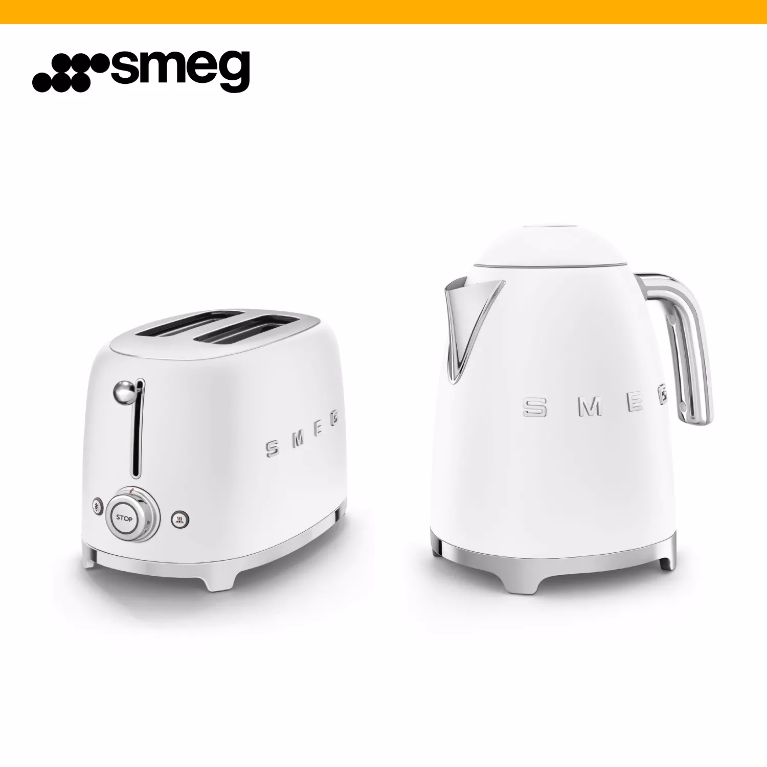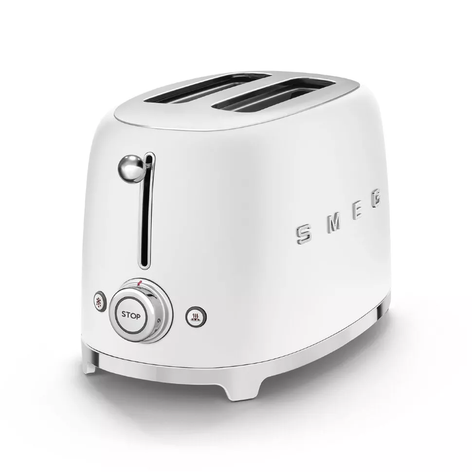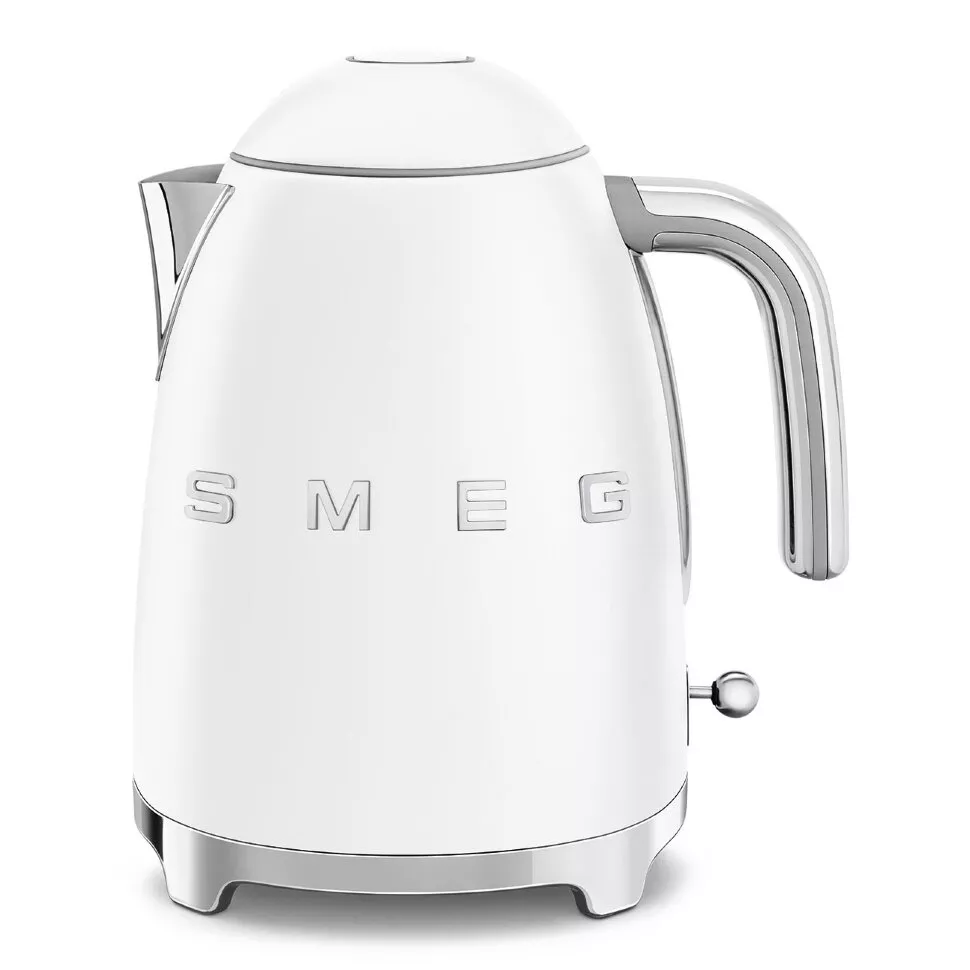 Белый матовый чайник и тостер Smeg из культовой серии 50-х — это гармония винтажного дизайна и первоклассного качества, которая украсит любой интерьер.