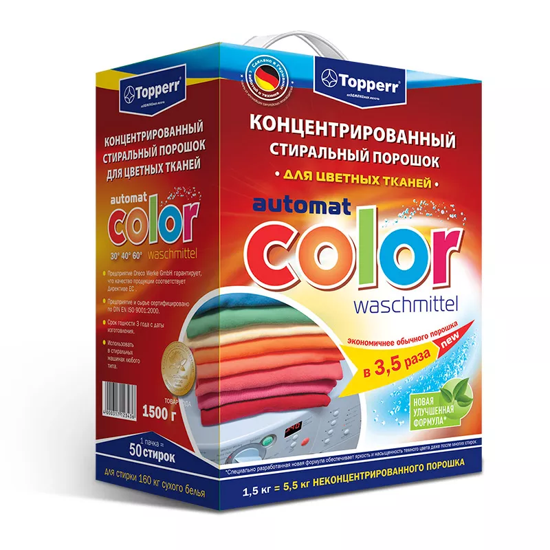 Концентрированный стиральный порошок для цветных тканей COLOR 1,5 кг Topperr 3204