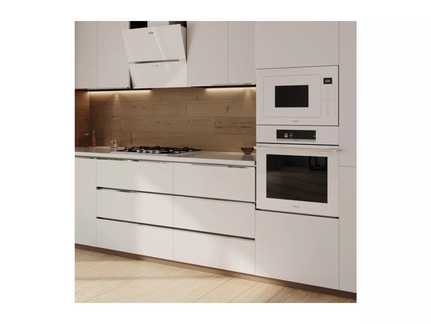 Микроволновая печь Korting KMI 825 TGW — встраиваемая СВЧ 25 л с кварцевым грилем 1000 Вт, сенсорным управлением и 8 авто‑программами, созданная для быстрого разогрева и полноценного приготовления блюд в едином стиле с остальной техникой Korting.