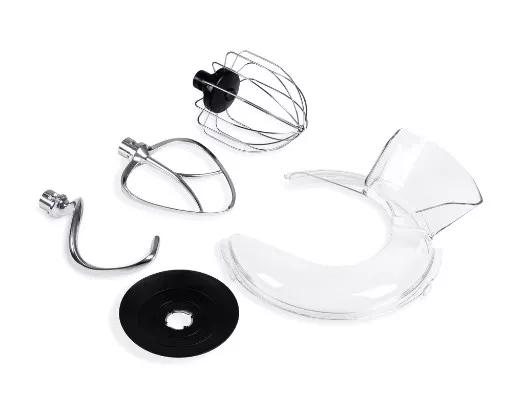 крюк для теста, венчик для взбивания, насадка для перемешивания, крышка на чашу. |