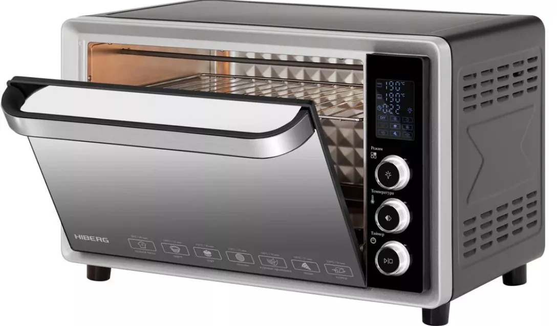 Мини-печь HIBERG оснащена 11 предустановленными режимами, где уже установлено оптимальное время приготовления и температура.