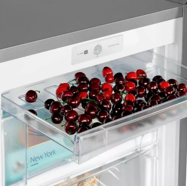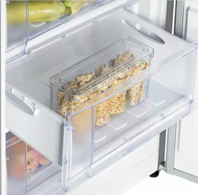 • Вместительность 105 литров: Внутреннее пространство организовано максимально эффективно. Три прозрачных выдвижных ящика позволяют удобно сортировать продукты и быстро находить нужное.
