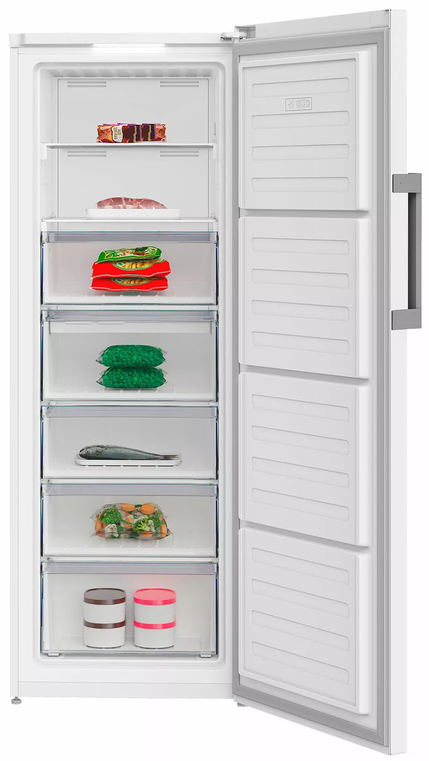 Белая морозильная камера объемом 255 л и шириной 60 см. Идеально подходит для работы в неотапливаемых помещениях – благодаря технологии FreezerGuard от Beko морозилку можно эксплуатировать при температуре до -15°С. Имеет перенавешиваемые двери, за счет чего легко располагается в любой части помещения. Оснащена электронным управлением и функцией быстрого замораживания. Не требует периодической разморозки благодаря технологии NoFrost.