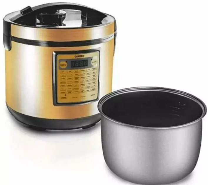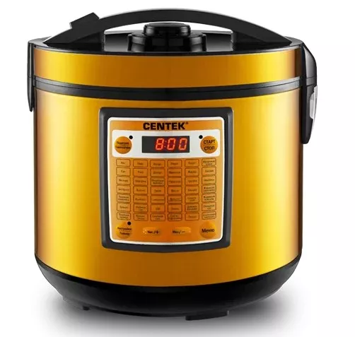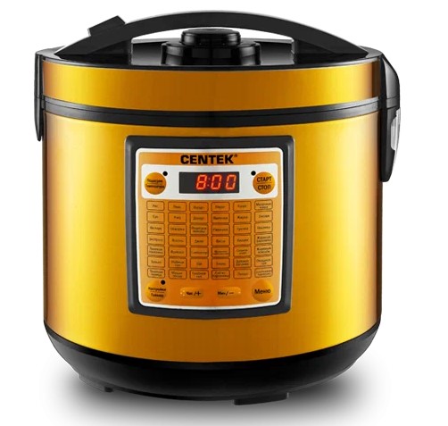 Стильная золотая мультиварка Centek CT-1495 идеально впишется в интерьер вашей кухни и поможет быстро и легко готовить вкусные и полезные блюда. Чаша с антипригарным покрытием объемом 5 литров и компактный корпус мультиварки из металла и пластика просты в уходе. Прибор имеет 42 автоматические программы, что позволит выбрать оптимальный режим приготовления для каждого блюда. Вы сможете приготовить в мультиварке детское питание, кашу, суп, йогурт, потушить или пожарить овощи и мясо или испечь пирог. Мультиварка Centek CT-1495 оснащена электронным управлением, благодаря чему вы легко установите необходимую программу, а также отрегулируете время и температуру приготовления того или иного блюда вручную. Прибор имеет таймер отсрочки старта продолжительностью до 24 часов. Мультиварка мощностью 900 Вт обеспечит быстрое приготовление пищи. После окончания приготовления можно воспользоваться функцией поддержания температуры в чаше.