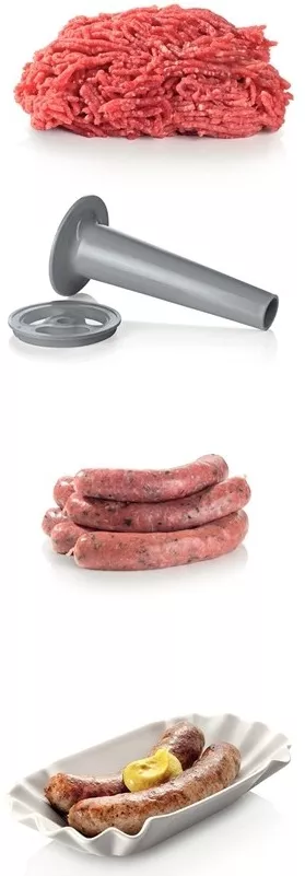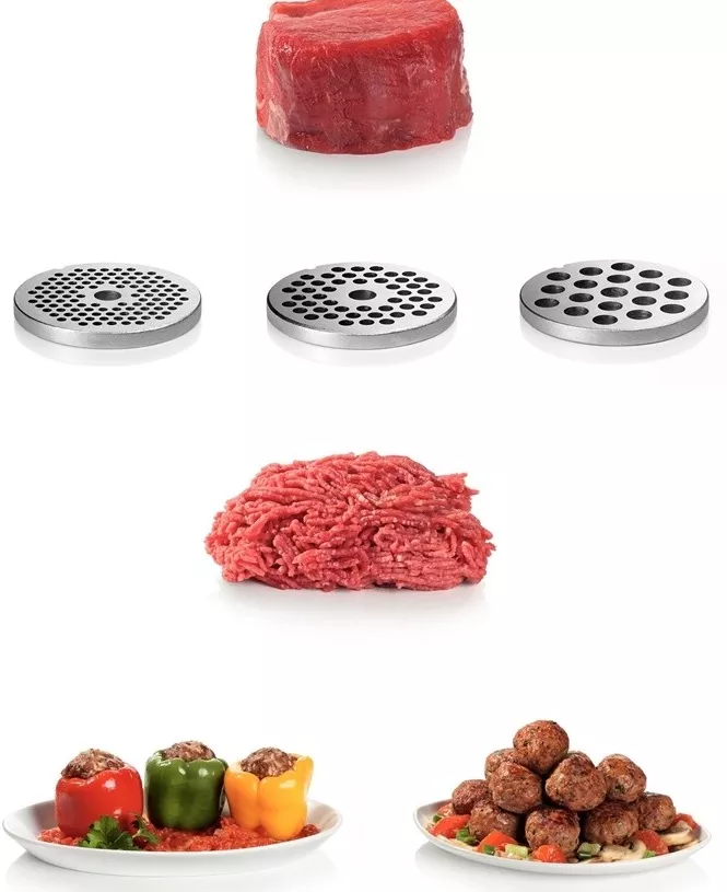 Эргономичность использования обеспечивается наличием пяти насадок, включая формовочные диски для фарша с отверстиями диаметром 3, 4.8 и 8 мм. Также в комплект входят насадки для приготовления колбас и кеббе, что открывает новые горизонты для кулинарных экспериментов. Универсальный толкатель и обычный загрузочный лоток из пластика делают процесс подачи продуктов удобным и безопасным.