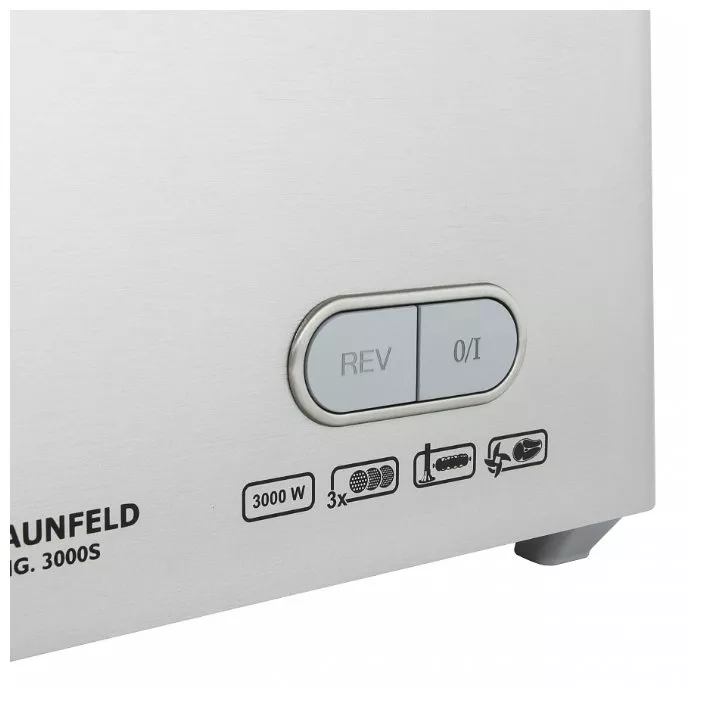Сердце этой модели — мощный двигатель на 3000 Вт, который гарантирует бесперебойную работу даже с самыми жилистыми и твердыми продуктами. Благодаря такой мощности мясорубка Maunfeld MMG.3000S демонстрирует впечатляющую производительность — до 3,9 кг фарша в минуту. Это значит, что вы потратите минимум времени на подготовку основы для семейного ужина или заготовок. А функция реверса легко справится с возможным застреванием жил, делая процесс еще более комфортным.