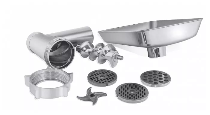 4 металлические решетки с разным размером отверстий позволяют готовить фарш любой консистенции — от нежного паштета до крупнозернистой массы для сочных котлет.