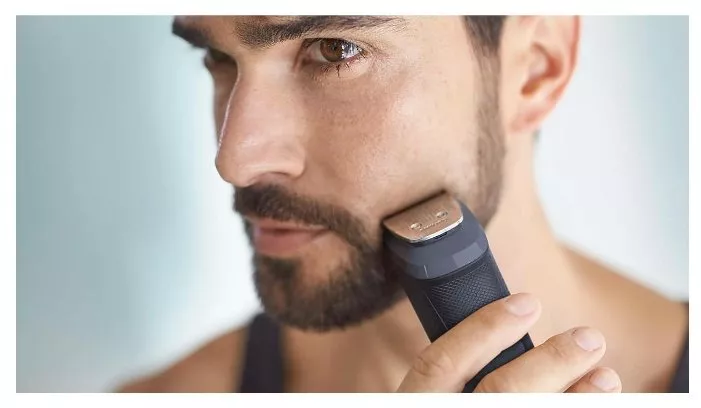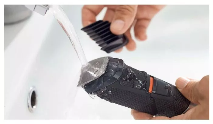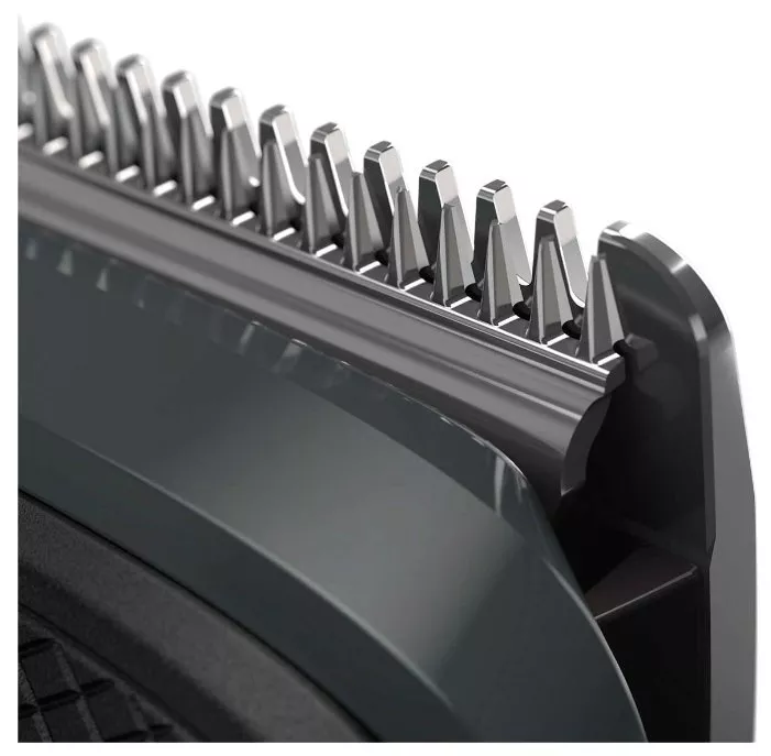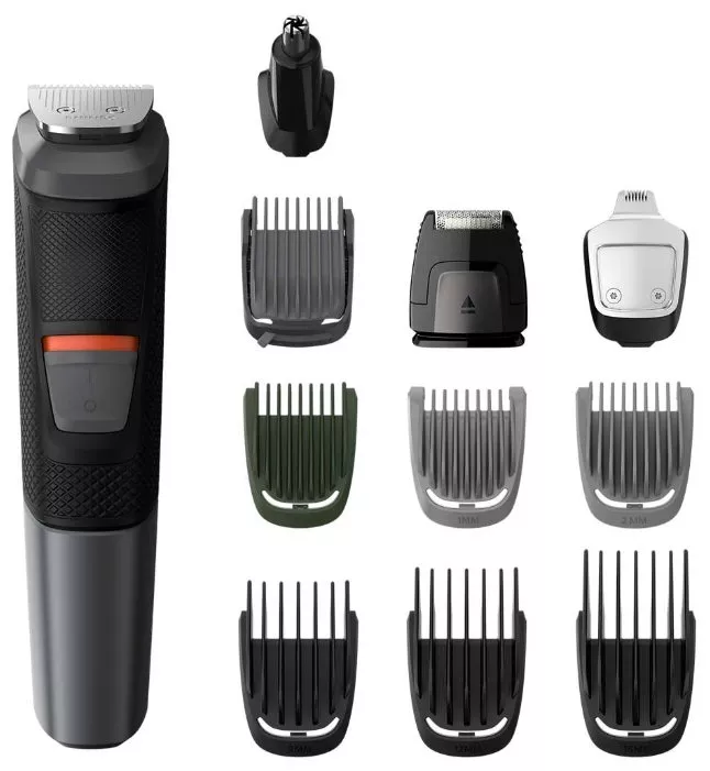 2 гребня для щетины; регулируемый гребень для бороды; 3 гребня для волос; гребень для тела; триммер для стрижки в носу и ушах; насадка-бритва; триммер для контуров; щеточка для чистки