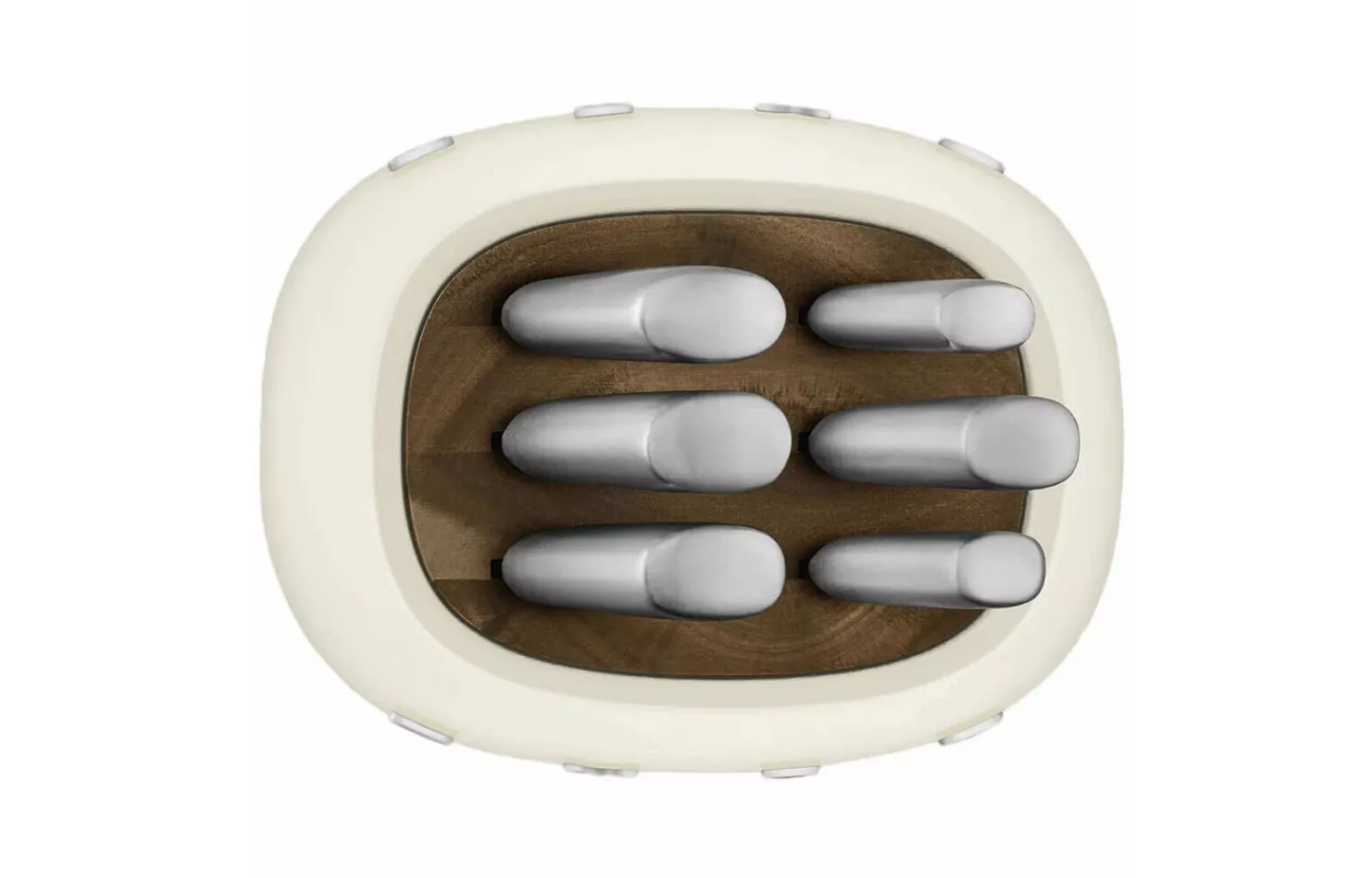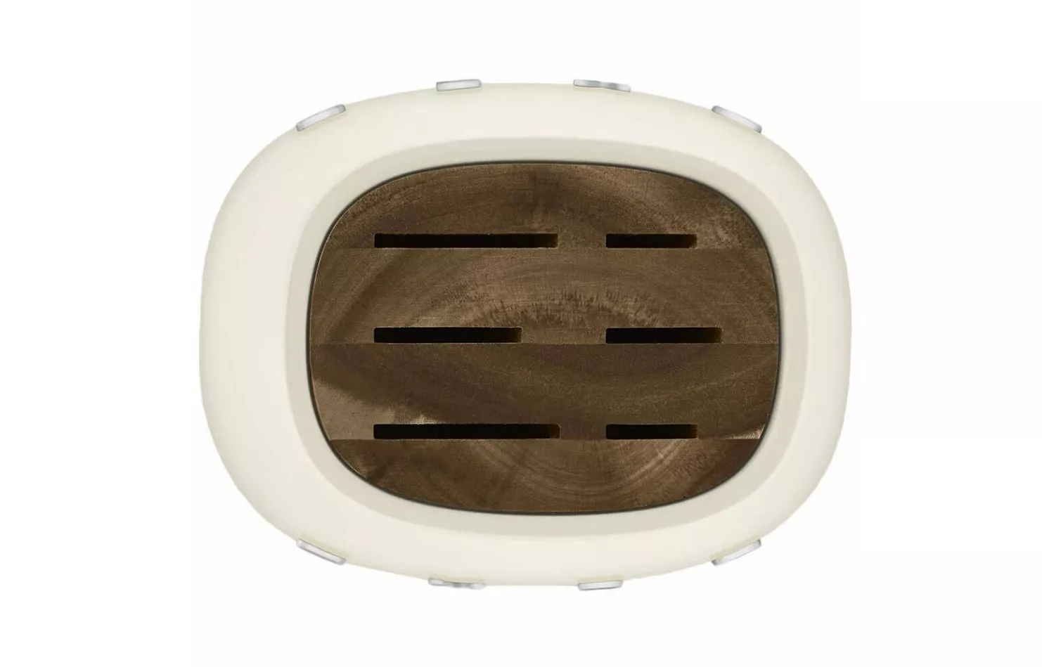 Премиальный дизайн. Элегантный блок для ножей сочетает древесину акации и сталь с порошковым покрытием.