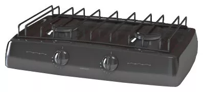Рабочий стол оснащен двумя газовыми горелками различной мощности. Изящная профильная решетка не только поддерживает посуду в устойчивом положении, но и за счет гладкой поверхности легко очищается.