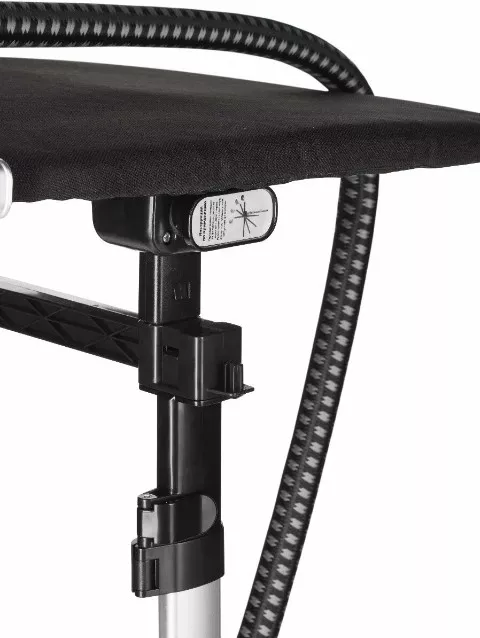 Встроенная в конструкцию напольного отпаривателя для одежды гладильная доска на двух телескопических шестах с 4 возможными положениями – горизонтальным, вертикальным, 30° и 60° – обеспечивает максимум удобства. Вы можете легко и быстро привести в порядок любую вещь, не тратя время на установку отдельной гладильной доски.
