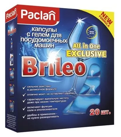 PACLAN Brileo Капсулы с гелем для посудомоечных машин All in one EXLUSIVE, 20 шт