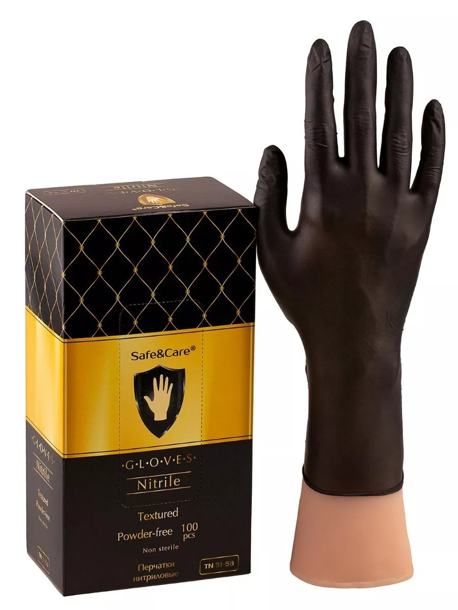 Перчатки нитриловые Safe&Care TN 358 чёрные 200 шт, размер XS
