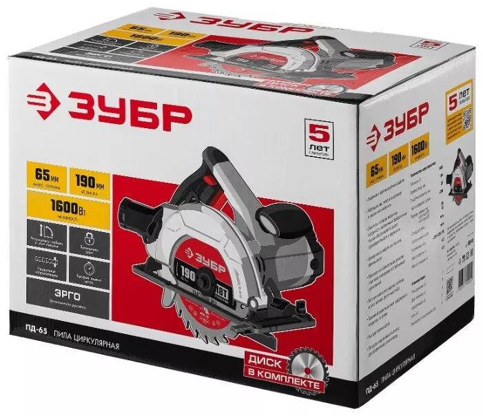 пила циркулярная Зубр ПД-65, диск пильный, направляющая, ключ, руководство по эксплуатации |