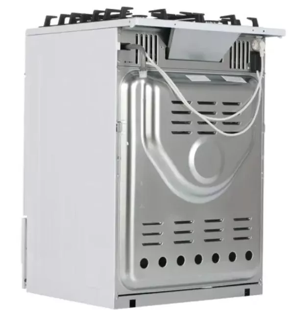 Плита оснащена газовой варочной поверхностью с четырьмя конфорками, включая одну экспресс-конфорку, и электрической духовкой. Это обеспечивает гибкость в приготовлении различных блюд и позволяет экономить энергию.