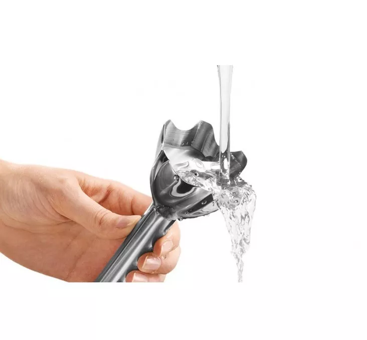 система EasyClick, технологии SplashControl и PowerBell Plus; прорезиненная ручка, насадки можно мыть в посудомоечной машине