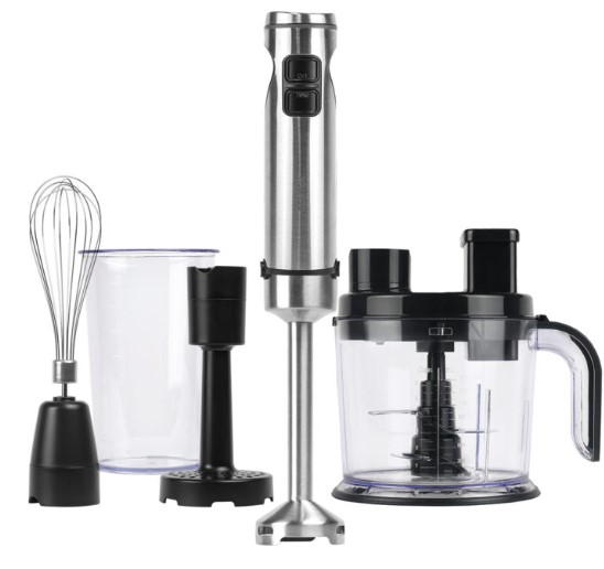 Погружной блендер Centek CT-1315 — это мощный (1500 Вт) и универсальный прибор, который может заменить стационарный блендер и использоваться для приготовления смузи и коктейлей. В комплект входят различные насадки и аксессуары, такие как блендерная насадка, насадка для вспенивания молока, насадка для пюре и другие. Для вашего комфорта предусмотрены удобные крепления-замочки, которые дают возможность быстро менять насадки. Форма рукоятки адаптирована под кисть руки.