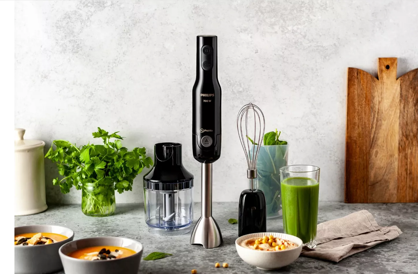 мерный стакан, насадка-блендер, насадка-венчик, насадка-измельчитель