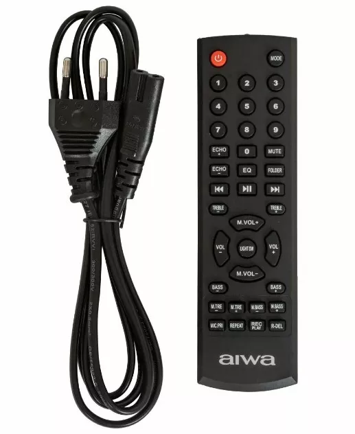 Аудиосистема AIWA CAS-618 оснащена двумя входами для микрофонов и может быть использована для караоке, в конструкции предусмотрена регулировка громкости. Вы сможете подключить прибор к компьютеру, смартфону или воспользоваться картой памяти microSD для воспроизведения музыки. Подключение к источнику звука возможно как проводное, так и по Bluetooth. Для работы аудиосистемы необходимо предварительно зарядить ее аккумулятор. Для этого в комплекте есть кабель питания.