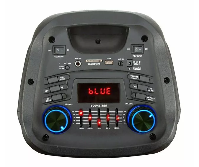Дополнительные функции включают TWS функцию соединения двух колонок в акустическую систему через Bluetooth, дисплей, пульт дистанционного управления, регулировку звучания микрофонов, LED подсветку динамика (активную), эквалайзер и возможность записи звука.