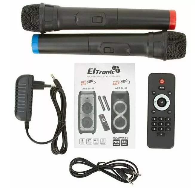 ElTRONIC 20-59 DANCE FIRE 500 - это портативная колонка, которая сочетает в себе мощность, функциональность и удобство использования.