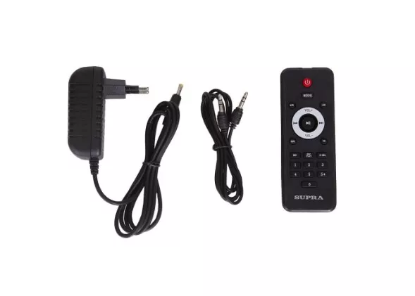 В комплект поставки входит аудиосистема, адаптер питания, пульт дистанционного управления, аудиокабель, гарантийный талон и инструкция на русском языке. Вес музыкального центра составляет всего 9,5 кг, что делает его удобным для перемещения и транспортировки.