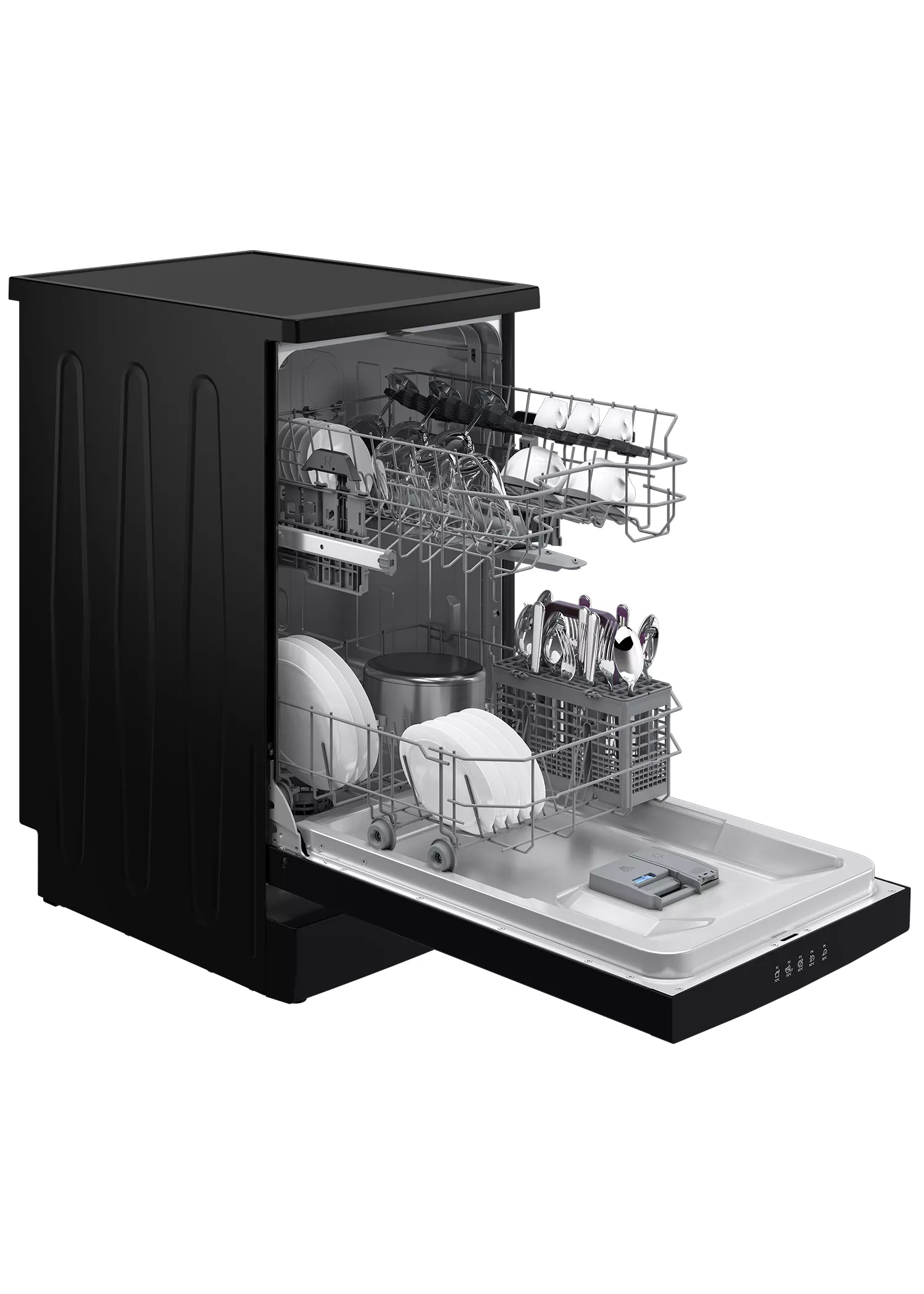 Узкая посудомоечная машина шириной 45 см вмещает до 10 комплектов посуды и имеет 5 программ, включая "мини" за 30 минут и программу интенсивного мытья. В посудомоечной машине предусмотрена функция половинной загрузки, благодаря чему не нужно ждать заполнения всей машинки для мытья. Функция отложенного старта обеспечивает автоматическое включение посудомоечной машины в указанное время, а система защиты от протечек позволяет безопасно использовать ее даже ночью.