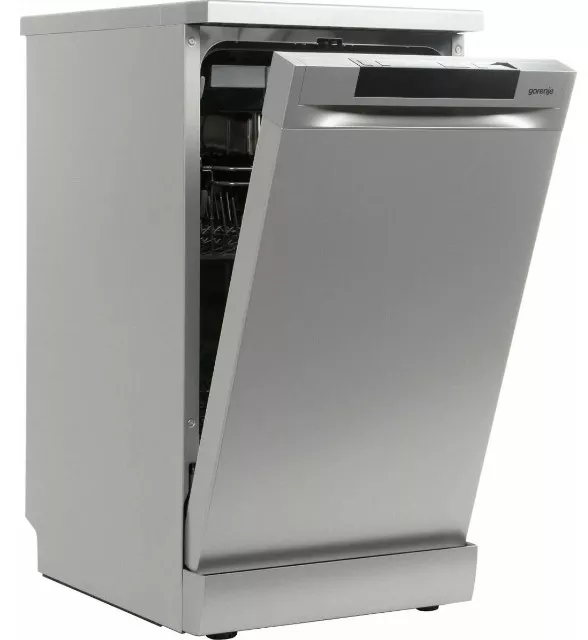 Посудомоечная машина (45 см) Gorenje GS541D10X — узкая отдельностоящая модель, которая относится к А-классу сушки и мойки. В камеру (с одним верхним и двумя нижними коромыслами, тремя корзинами), выполненную из прочной нержавеющей стали, вмещается 11 комплектов посуды. В работе используется конденсационная сушка, при которой дверца автоматически открывается, после чего можно получить сухую и прохладную посуду.