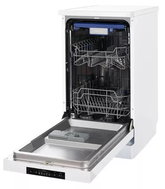 Для удобства очистки большого количества посуды в модели есть 3 уровня загрузки: верхняя корзина, нижняя и для столовых приборов.