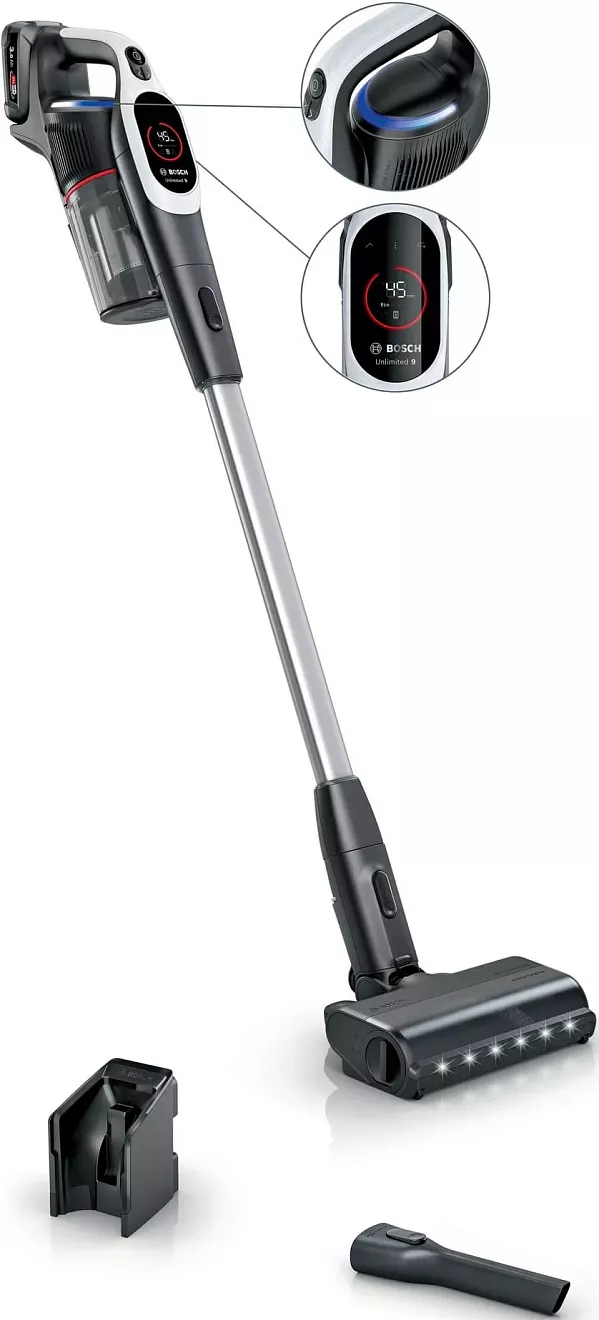 Пылесос Bosch BCS931WBA является высокотехнологичным прибором для уборки, который сочетает в себе функции вертикального и портативного пылесоса. Он выполнен в строгом и стильном белом цвете, входящем в дизайн-линию Unlimited. Это прибор, который обладает высоким уровнем функциональности и удобства использования. Пылесос работает от аккумулятора, что позволяет осуществлять уборку в любом уголке дома, не зависимо от наличия розеток. Время работы составляет целых 60 минут, что достаточно для тщательной уборки даже большой площади. При этом время подзарядки аккумулятора составляет всего 3 часа. Наличие индикатора уровня зарядки позволяет контролировать процесс зарядки и использования пылесоса.