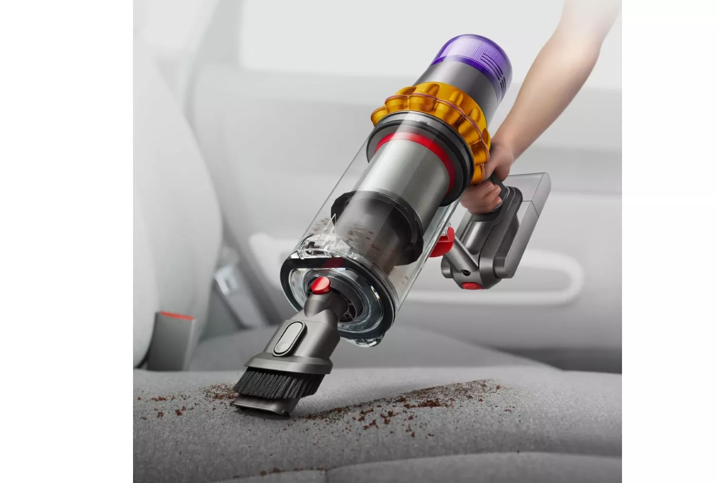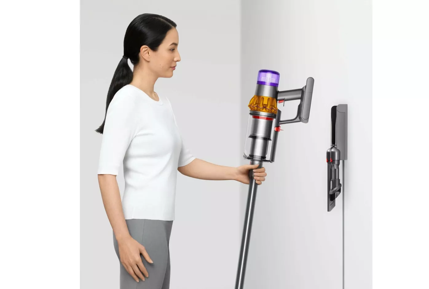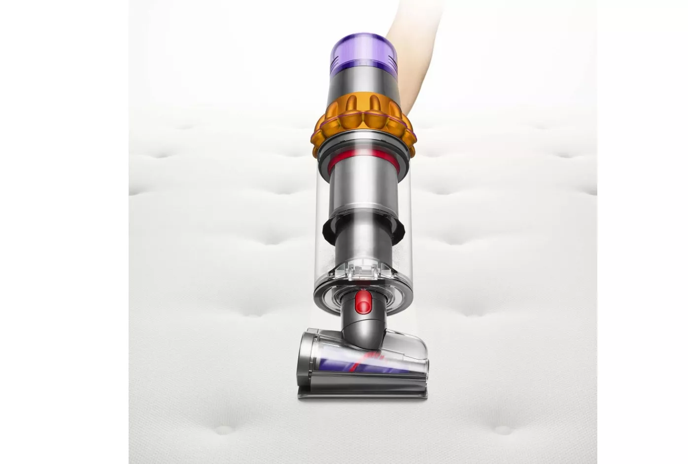 В беспроводной пылесос Dyson встроен двигатель Hyperdymamic с высокой силой всасывания, что позволяет ему быстро и эффективно очищать любые поверхности от пыли, шерсти животных и других загрязнений. Помимо этого, V15 Detect Absolute имеет несколько режимов работы: режим Эко, режим Авто, который автоматически подстраивается под тип поверхности, и режим Турбо, обеспечивающий максимальный уровень мощности — 240 Вт.