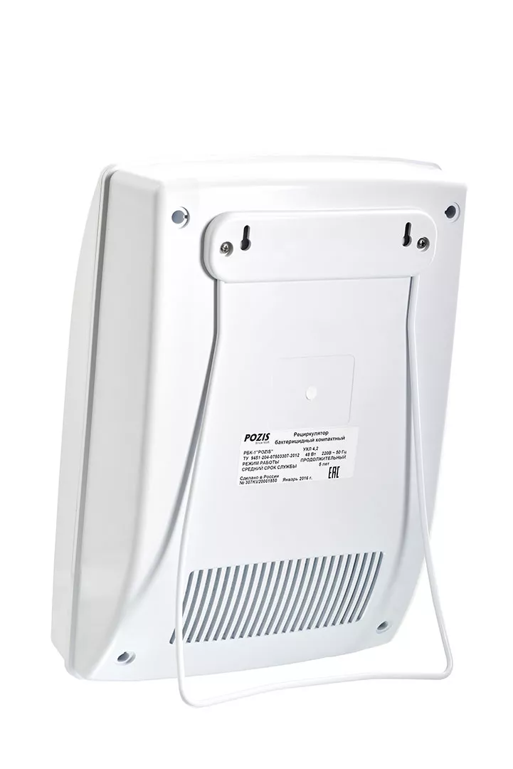 Pozis РБК-2 легко интегрируется в любой интерьер благодаря своему лаконичному белому дизайну и компактным размерам (150x291x406 мм). Вы можете выбрать наиболее удобный способ установки: настенный для экономии места или настольный для мобильности. Прочный металлический корпус гарантирует долговечность и устойчивость прибора.