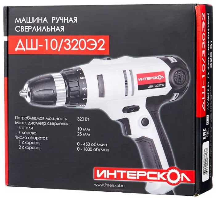 Дрель-шуруповерт сетевая ИНТЕРСКОЛ ДШ-10/320Э2 320 Вт 35 Н·м